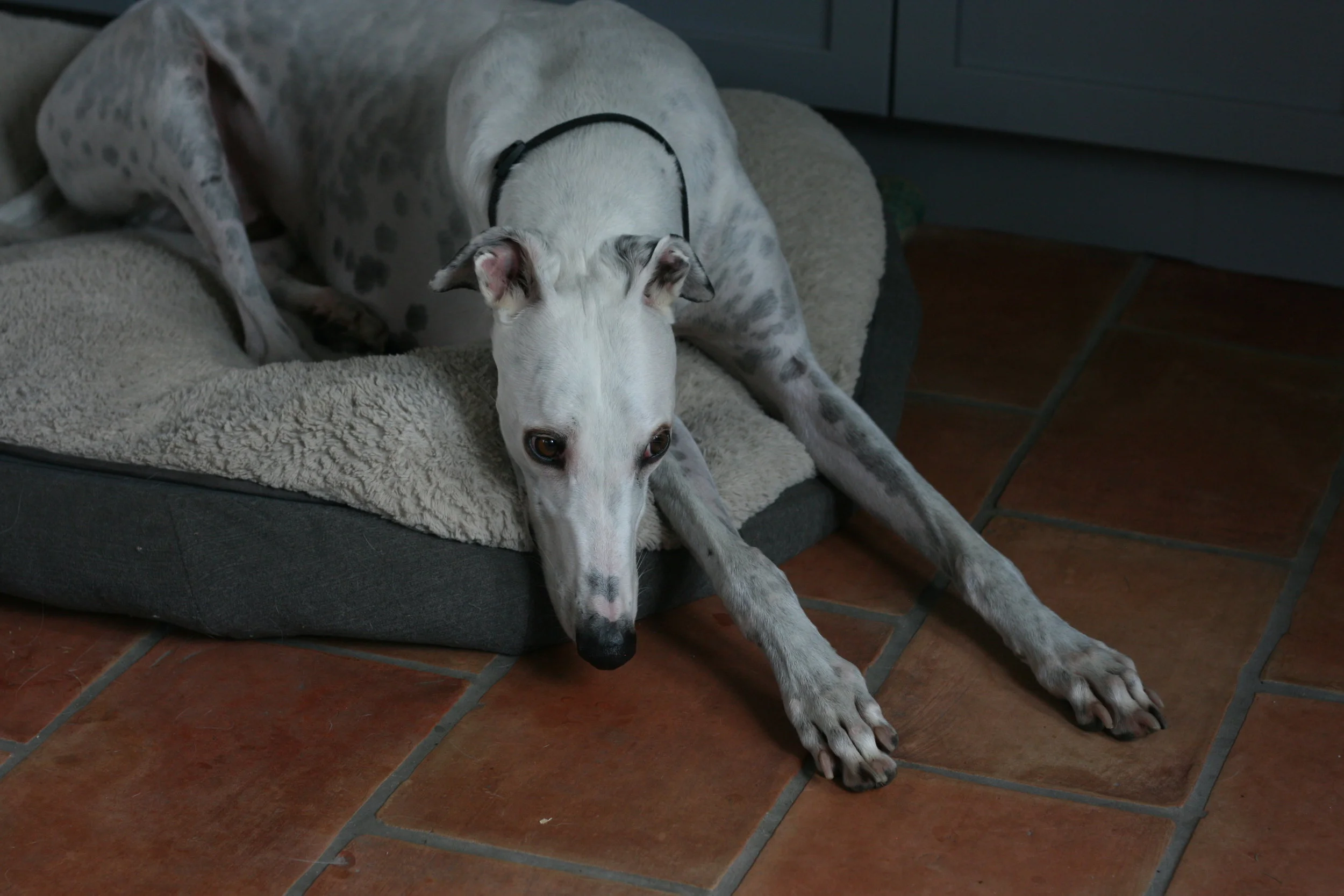 One of my parents greys. Moe. Yes he always looks that cute.